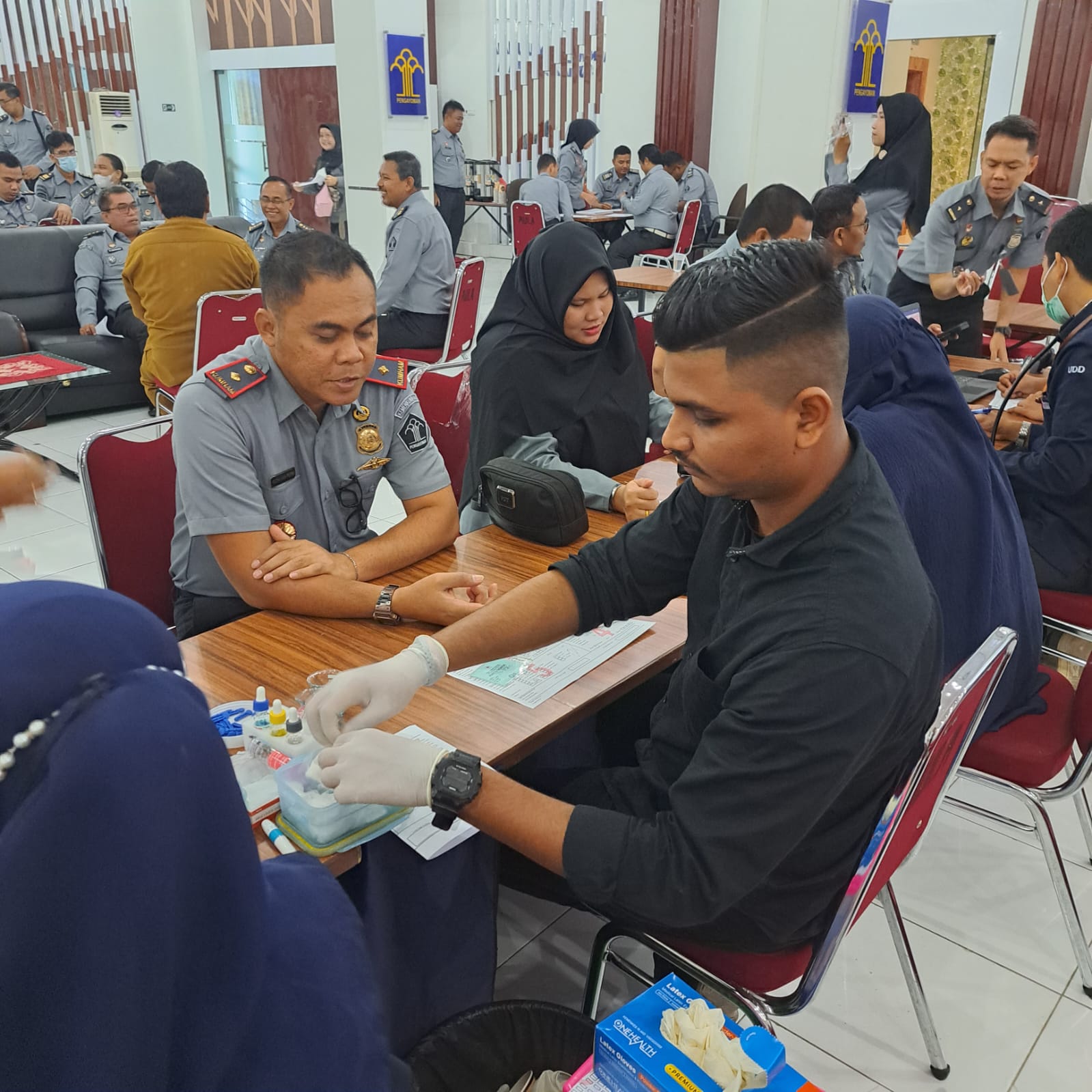 Kepala Kantor Imigrasi Belawan, Ridha Sah Putra dan perwakilan pegawai hadir untuk berpartisipasi mendonorkan darah dalam kegiatan ini.