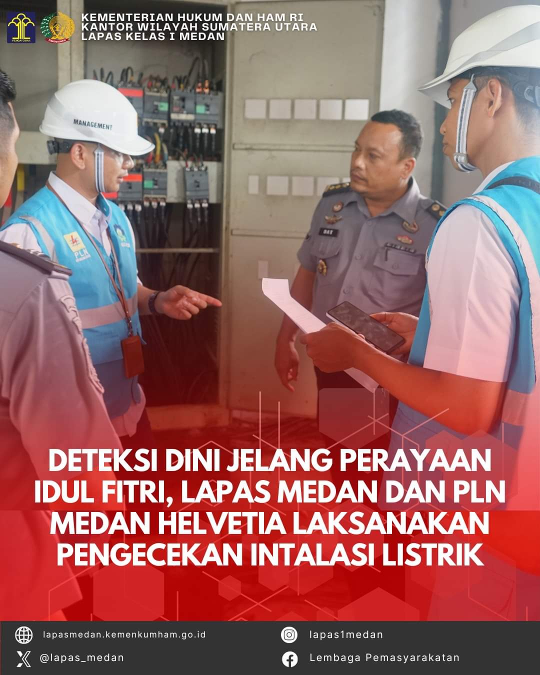 Deteksi Dini Jelang Perayaan Idul Fitri, Lapas Medan dan PLN Medan Helvetia Laksanakan Pengecekan Intalasi Listrik