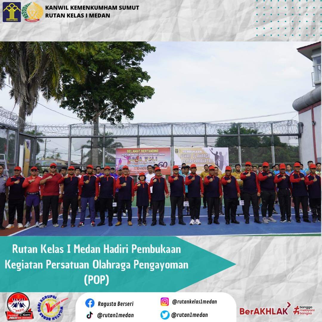 Dihadiri oleh Para pimpinan Tinggi Pratama, Para Kepala Unit Pelaksana Teknis, Seluruh Jajaran Pegawai Kanwil Kemenkumham Sumatera, dan para peserta perwakilan dari setiap Unit Pelaksana Teknis, Kegiatan Persatuan Olahraga Pengayoman (POP) ini mempertandingkan cabang olahraga Futsal, Volley dan Tenis Meja.