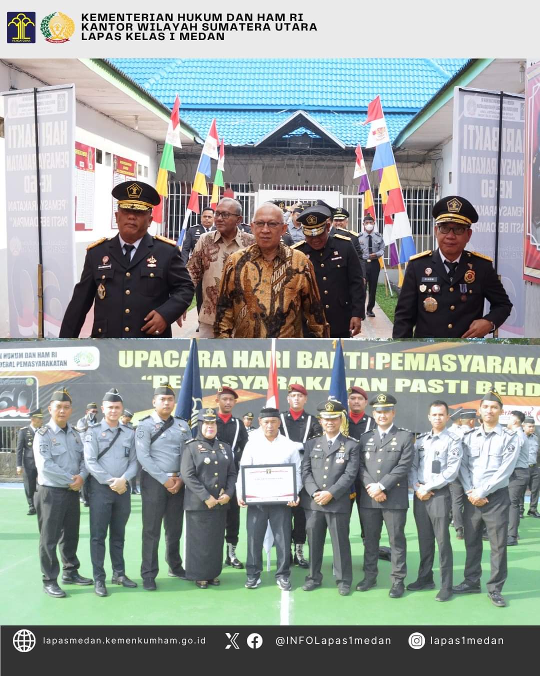 MEDAN | TURNBACKHOAX.NET – Kalapas Kelas I Medan, Maju Amintas Siburian menghadiri rangkaian puncak Hari Bhakti Pemasyarakatan ke-60 pada tanggal 27 April 2024 dengan mengusung tema “Pemasyarakatan PASTI Berdampak”. Kegiatan upacara dan syukuran dilaksanakan di Rutan Kelas I Medan, Sabtu (27/04/2024).
