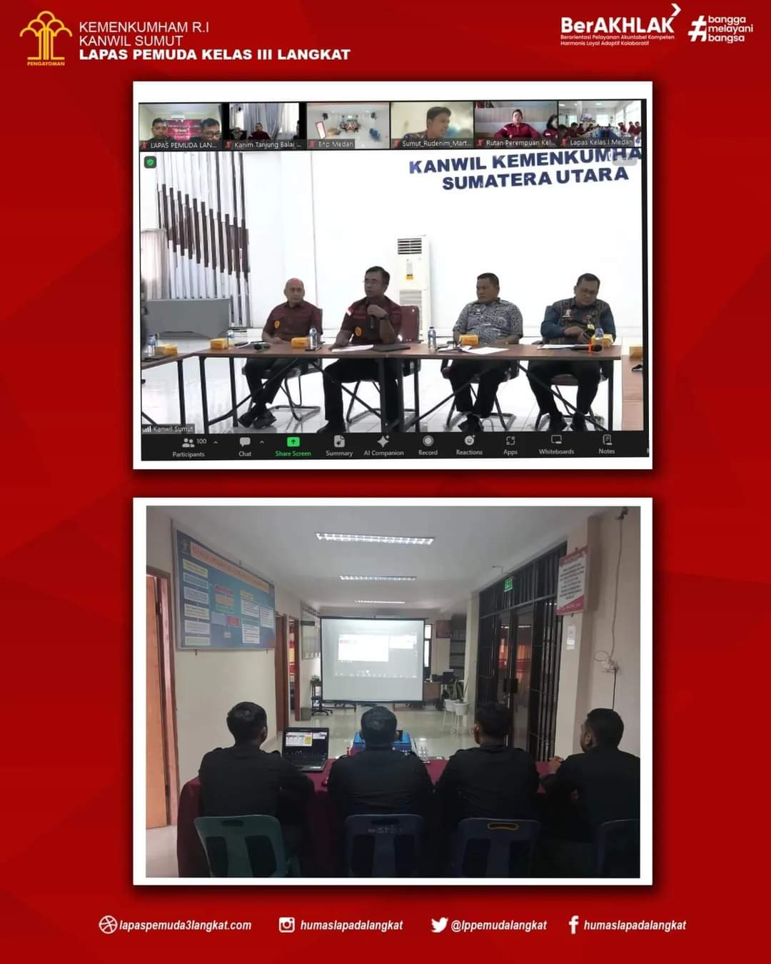 LANGKAT | TURNBACKHOAX.NET -Dalam rangka mewujudkan pengelolaan Keuangan dan BMN yang akuntabel Lapas Pemuda Kelas III Langkat Kanwil Kemenkumham Sumut ikuti penguatan oleh Kepala Kantor Wilayah Kementerian Hukum dan HAM Sumatera Utara, Agung Krisna melalui zoom meeting. Kamis, (02/05).
