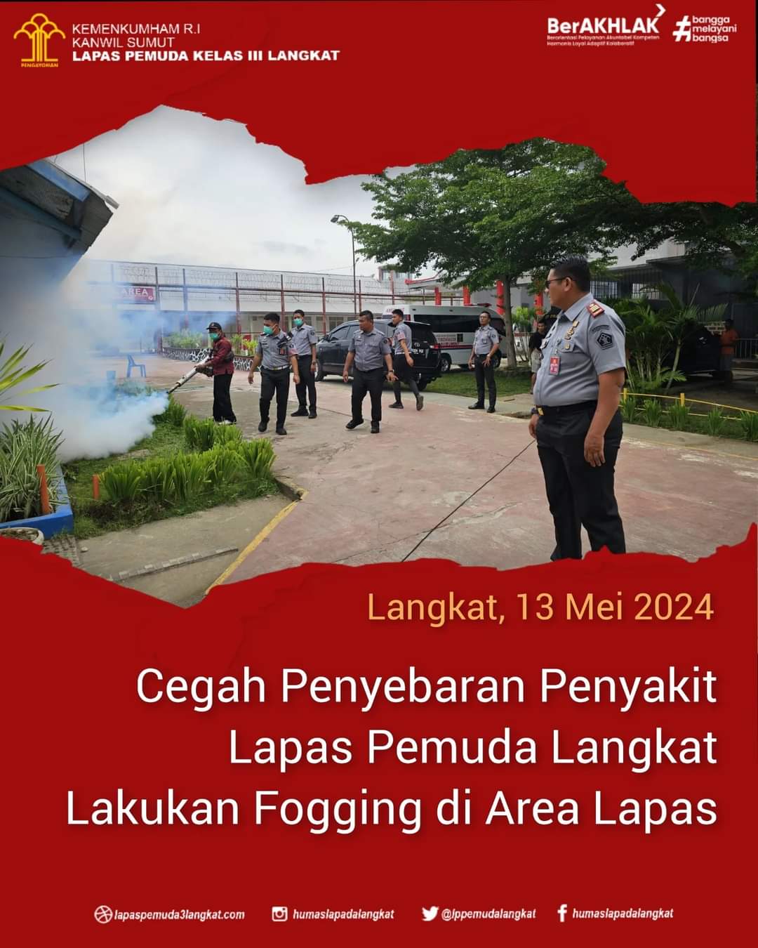 Fogging dilakukan untuk mencegah terjadinya penyakit Demam Berdarah Dengue (DBD) dalam upaya menjaga kesehatan Warga Binaan Pemasyarakatan (WBP) Lapas Pemuda Langkat.
