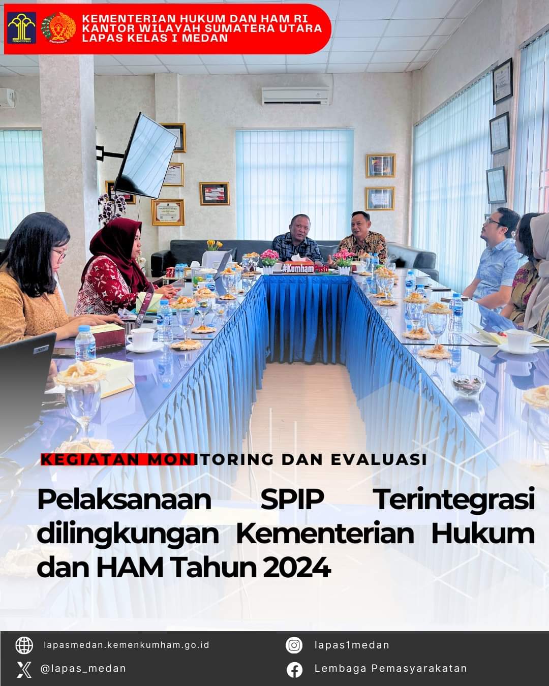 MEDAN|TURNBACKHOAX.NET – Tim Strategi Pencapaian (Penguatan) Kinerja Kementerian Hukum dan HAM melakukan Kegiatan Monitoring dan Evaluasi Pelaksanaan SPIP Terintegrasi dilingkungan Kementerian Hukum dan HAM Tahun 2024, Kanwil Kemenkumham Sumut Pada Jumat (15/06/2024).