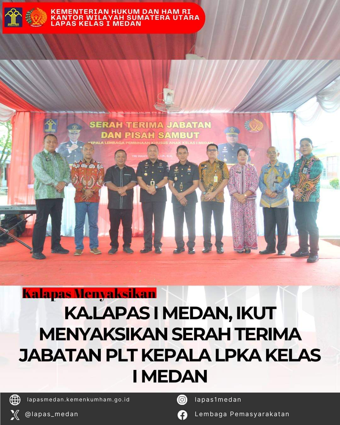 Ka.Lapas I Medan, ikut menyaksikan serah terima jabatan PLT kepala LPKA Kelas I Medan