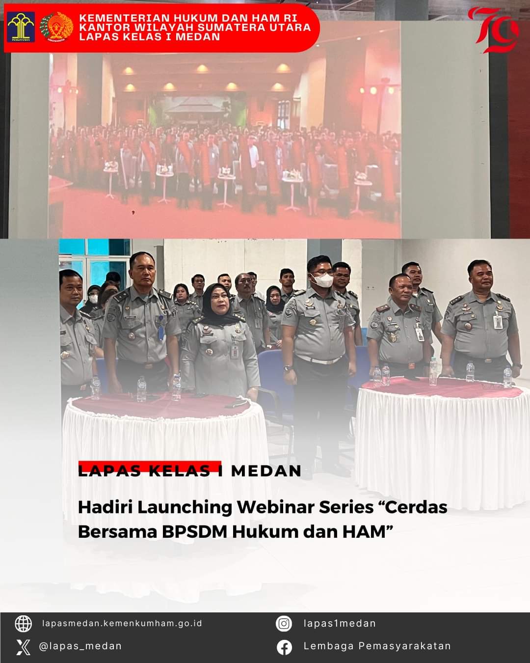 MEDAN|TURNBACKHOAX.NET – Dalam rangka memenuhi kebutuhan pengembangan kompetensi pegawai di lingkungan Kementerian Hukum dan Hak Asasi Manusia (Kemenkumham), BPSDM Hukum dan HAM meluncurkan Webinar Series dengan tema “Cerdas Bersama BPSDM Hukum dan HAM”. Kegiatan ini diikuti Kepala Lembaga Pemasyarakatan Kelas I Medan, Maju Amintas Siburian dan Seluruh Jajaran melalui zoom bertempat di Aula Lapas Kelas I Medan, Senin (05/08/2024).