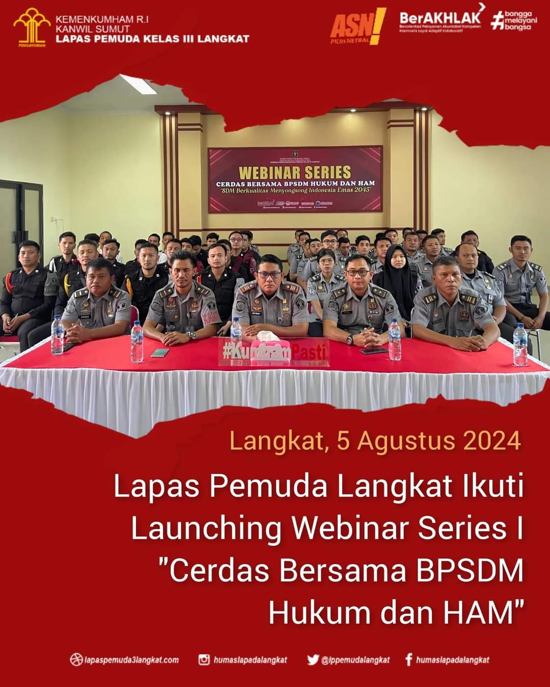 Terpusat di Kantor Badan Pengembangan Sumber Daya Manusia (BPSDM) Hukum dan HAM, kegiatan tersebut disiarkan secara langsung melalui Zoom Meeting, Live Streaming Youtube BPSDM TV serta diikuti oleh seluruh jajaran Kemenkumham di seluruh Indonesia tak terkecuali seluruh jajaran Lapas Pemuda Langkat melalui aplikasi Massive Open Online Course (MOOC) Kemenkumham.