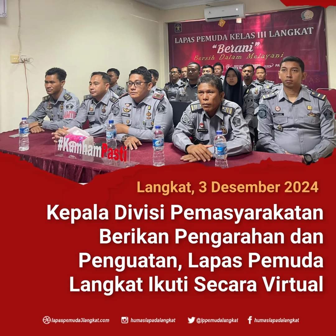 LANGKAT|TURNBACKHOAX.NET – Dalam rangka mewujudkan System Pemasyarakatan yang Modern dan Humanis, Lapas Pemuda Kelas III Langkat Kanwil Kemenkumham Sumut ikuti penguatan oleh Kepala Divisi Pemasyarakatan (Kadivpas) Kantor Wilayah Kemenkumham Sumut, Rudy Fernando Sianturi melalui zoom meeting, Selasa (03/12/2024).