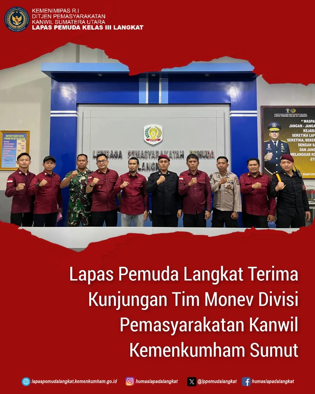 Dalam kunjungan kali ini Tim monev melaksanakan monitoring terkait pemberian layanan remisi Natal dilingkungan Lapas Pemuda Kelas III Langkat. Serta melaksanakan monitoring terkait dengan bantuan pengamanan dan APH dalam hal ini TNI/POLRI dan Bantuan Pengamanan terhadap hari libur Nataru Tahun 2025.