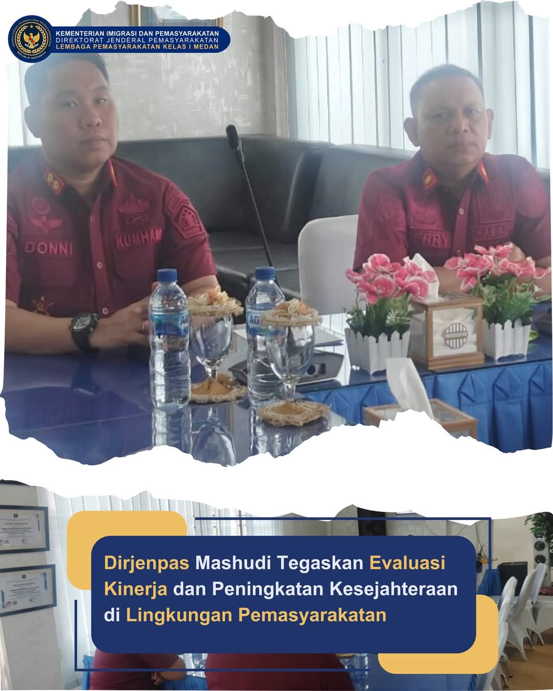 MEDAN|TURNBACKHOAX.NET – Lapas Kelas I Medan mengikuti pengarahan virtual yang disampaikan oleh Direktur Jenderal Pemasyarakatan (Dirjenpas), Mashudi, pada Kamis (27/2). Acara ini berlangsung di ruang rapat kerja Kepala Lapas (Kalapas) bersama dengan Kepala Pengamanan (Ka.KPLP).