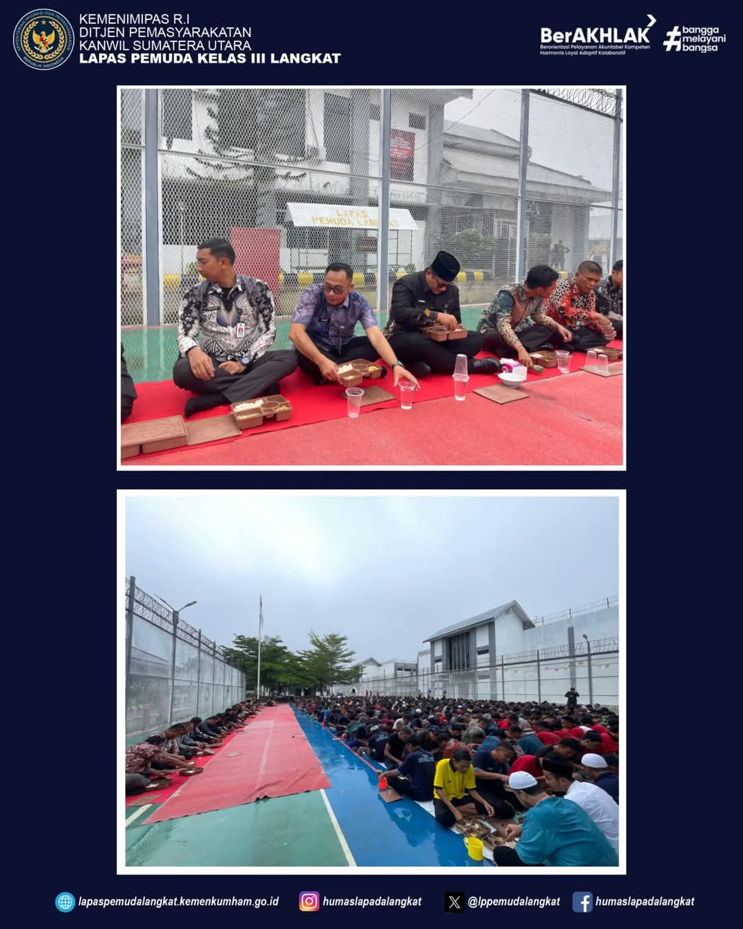 LANGKAT|TURNBACKHOAX.NET – Sambut bulan suci Ramadan 1446 Hijriah, Lapas Pemuda Kelas III Langkat menggelar makan bersama seluruh Warga Binaan Pemasyarakatan (WBP) di lapangan upacara, Jumat (28/02/2025). Kegiatan ini bertujuan memberikan menjalin silaturahmi dan rasa kekeluargaan antar petugas dan WBP serta memberikan pengarahan terkait bulan Puasa.