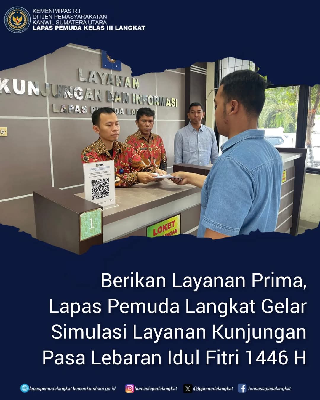 LANGKAT |TURNBACKHOAX.NET – Lembaga Pemasyarakatan (Lapas) Pemuda Kelas III Langkat menggelar simulasi alur layanan kunjungan dalam rangka persiapan menyambut Hari Raya Idul Fitri 1446 H/2025 M, Sabtu (29/03/2025).