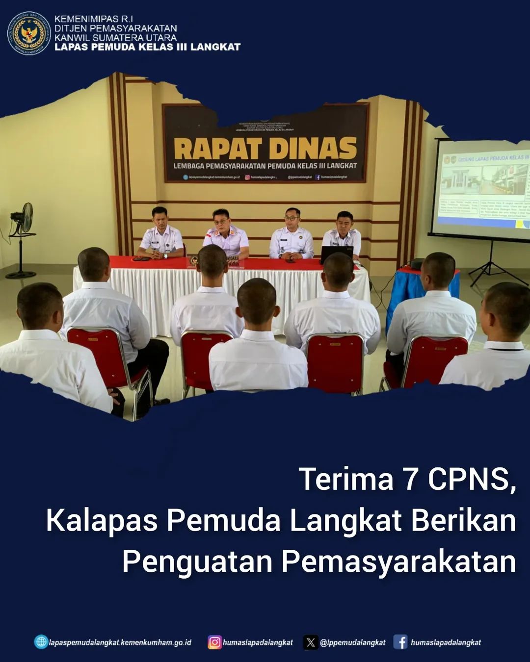 “Saya berharap para CPNS mampu beradaptasi dengan cepat terhadap ritme kerja dan budaya organisasi di Lapas Pemuda Kelas III Langkat. Jadilah sebagai garda terdepan dalam menjaga keamanan dan pembinaan warga binaan, seorang penjaga tahanan harus bekerja dengan disiplin, tangguh, dan menjunjung tinggi profesionalisme,” pungkasnya.