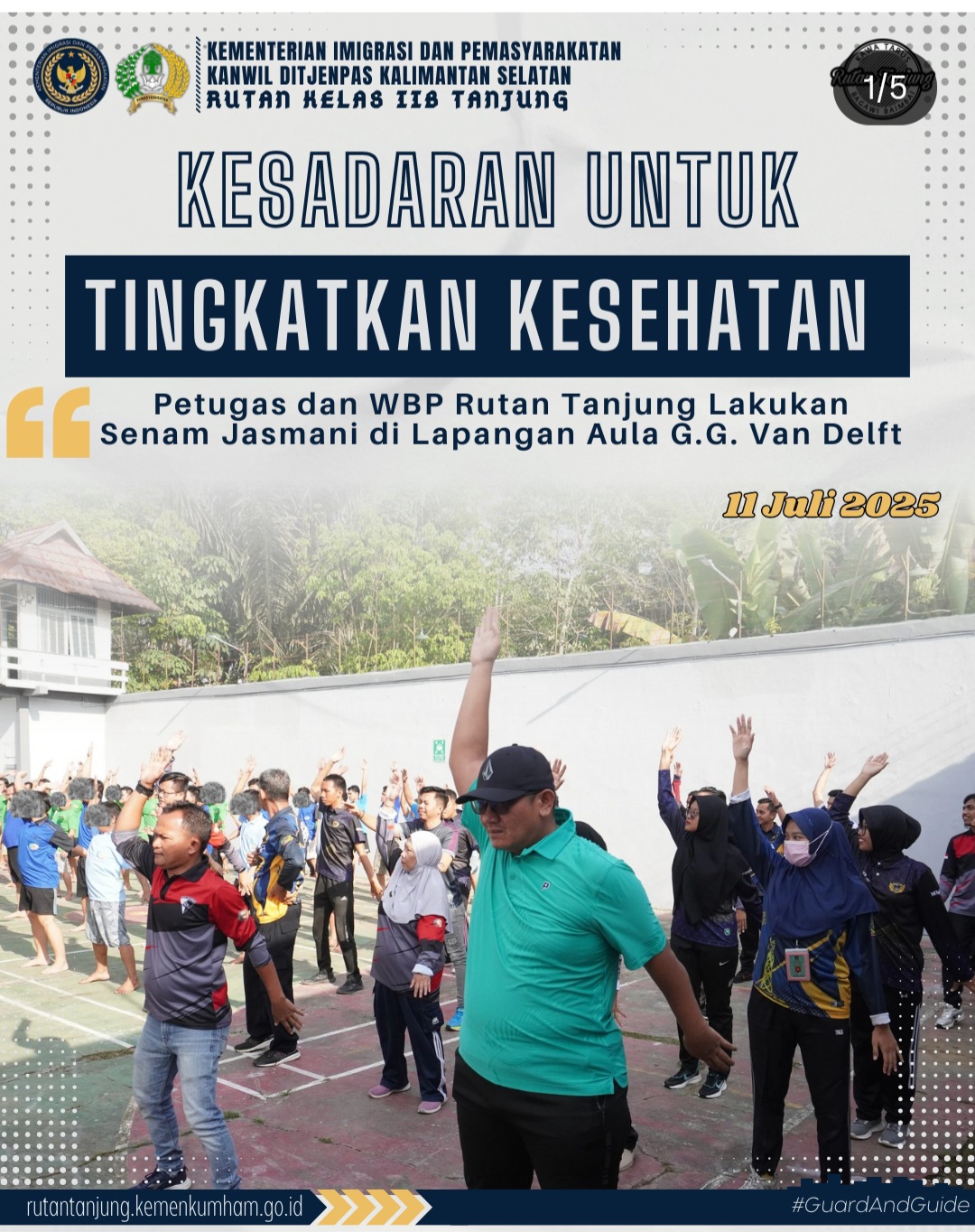 TANJUNG| TURNBACKHOAX.NET -Rumah Tahanan Negara (Rutan) Kelas IIB Tanjung melakukan kegiatan rutin setiap jum’at pagi, yaitu senam jasmani. Kegiatan ini merupakan bagian dari bentuk pelayanan pembinaan yang diberikan kepada WBP Rutan Tanjung. Jumat (11/07/2025).