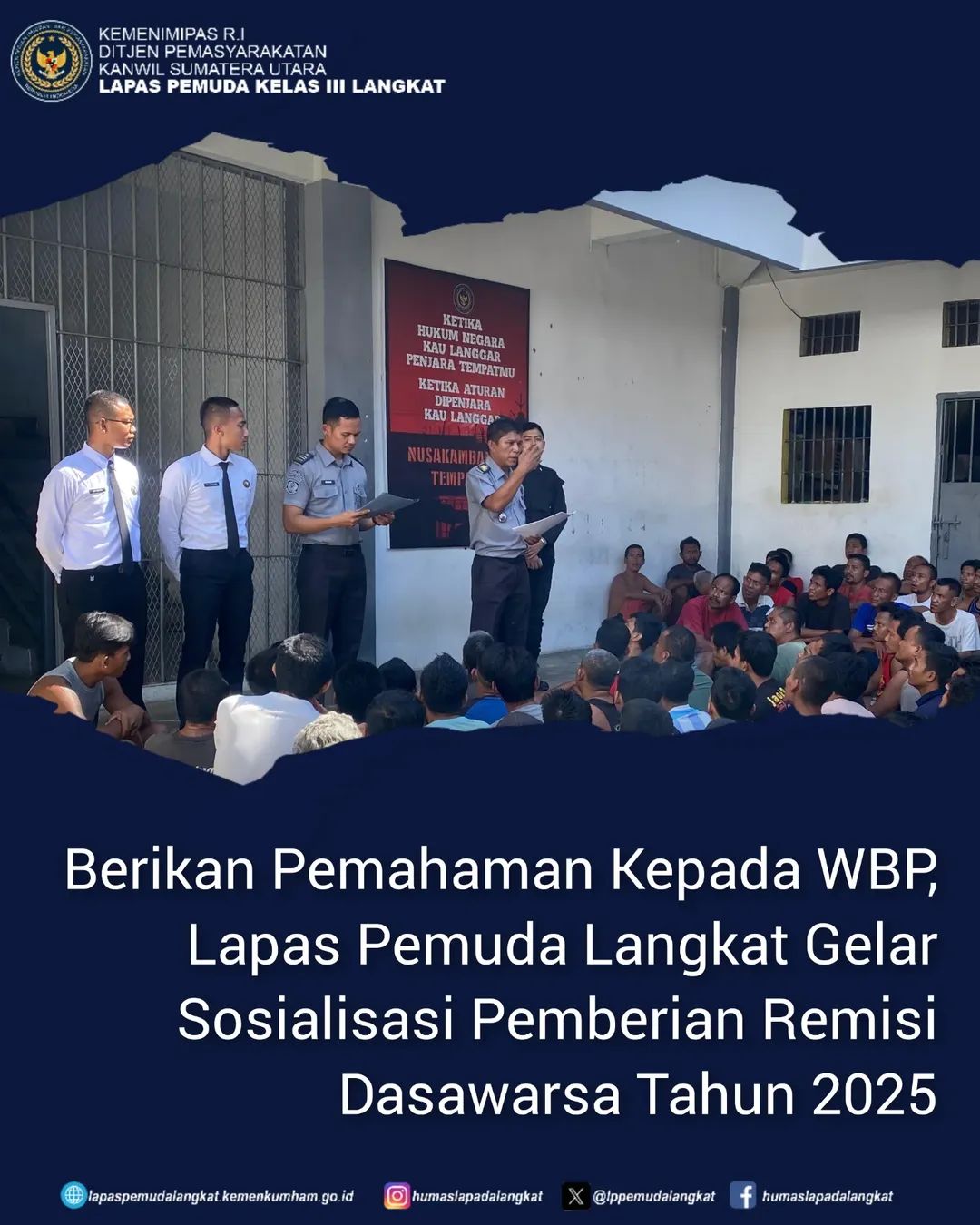 Kalapas Pemuda Langkat, Kenal Purba melalui Kasubsi Admisi dan Orientasi, Juan Carlos Hutabarat dalam paparannya menjelaskan bahwa remisi dan pengurangan masa pidana dasawarsa diberikan kepada semua narapidana dan anak binaan yang pada tanggal 17 Agustus 2025 telah memiliki putusan pidana berkekuatan hukum tetap dan telah dieksekusi.