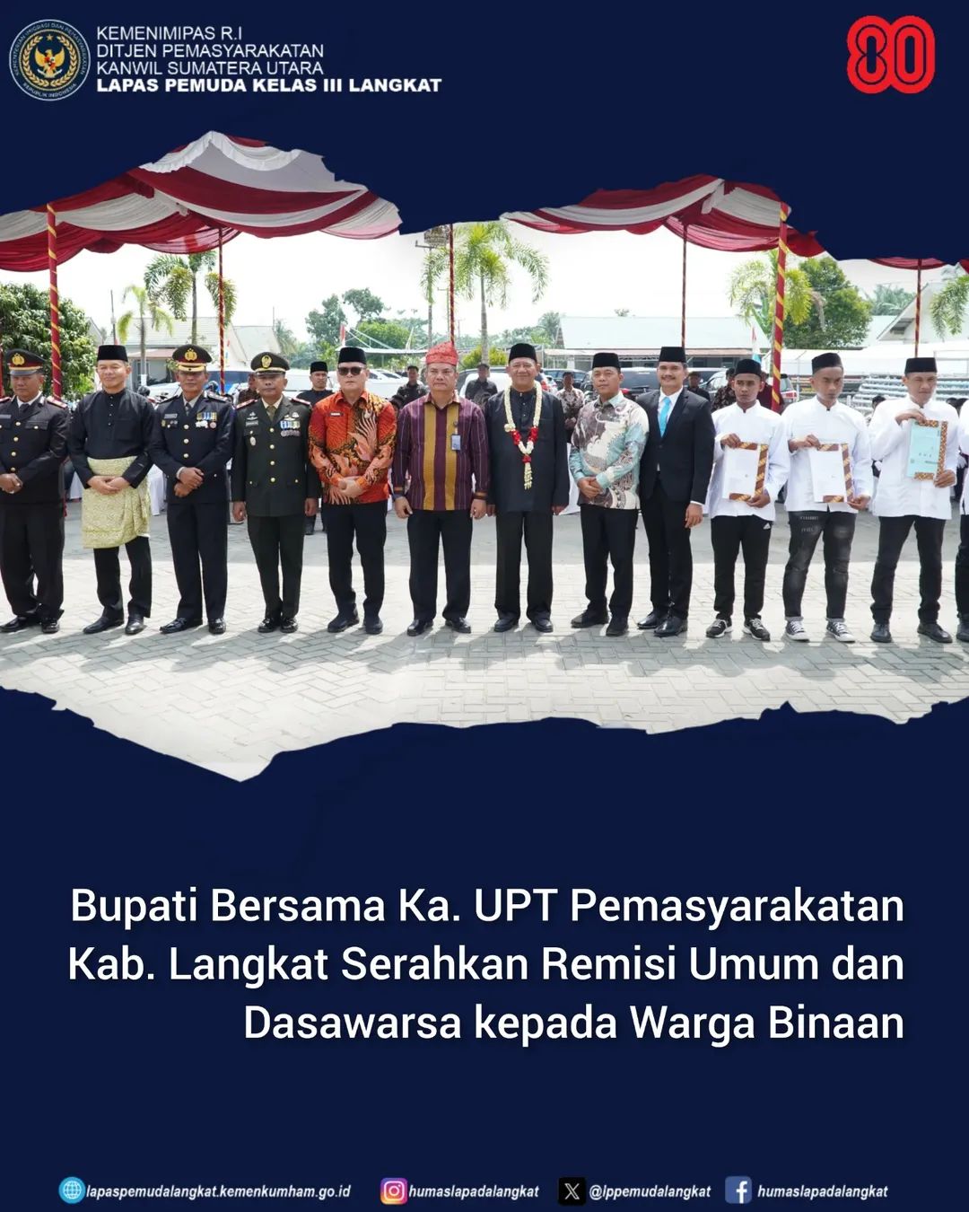 LANGKAT | TURNBACKHOAX.NET – Dalam rangka peringatan Hari Ulang Tahun (HUT) ke-80 Kemerdekaan Republik Indonesia, ribuan warga binaan Unit Pelaksana Teknis (UPT) se-Kabupaten Langkat menerima pengurangan masa hukuman atau remisi. Remisi yang diterima warga binaan terdiri dua macam remisi yakni remisi umum (RU) dan Remisi Dasawarsa (RD), Minggu (17/8/2025).