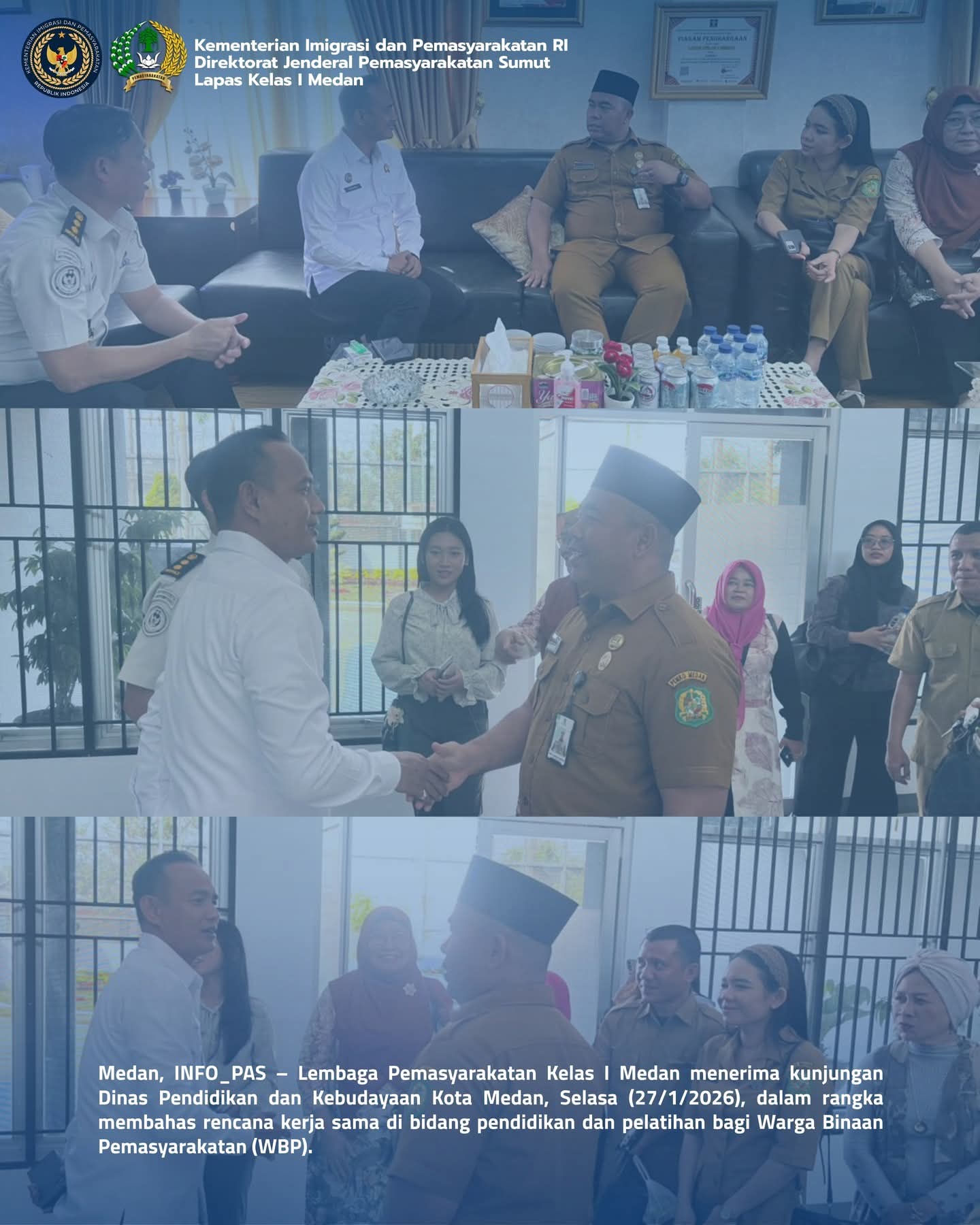 MEDAN | TURNBACKHOAX.NET – Lembaga Pemasyarakatan Kelas I Medan menerima kunjungan Dinas Pendidikan dan Kebudayaan Kota Medan, Rabu (28/1/2026), dalam rangka membahas rencana kerja sama di bidang pendidikan dan pelatihan bagi Warga Binaan Pemasyarakatan (WBP).