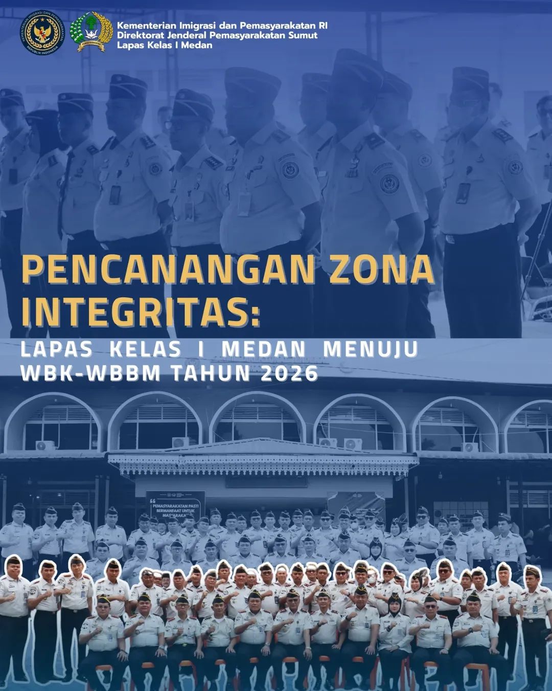 Pencanangan Zona Integritas ditandai dengan penandatanganan Komitmen Bersama dan Pakta Integritas yang dipimpin langsung oleh Kepala Kantor Wilayah Ditjenpas Sumatera Utara, Yudi Suseno, serta diikuti oleh pejabat struktural Kanwil dan seluruh Kepala Unit Pelaksana Teknis (UPT) Pemasyarakatan, termasuk Kepala Lapas Kelas I Medan.