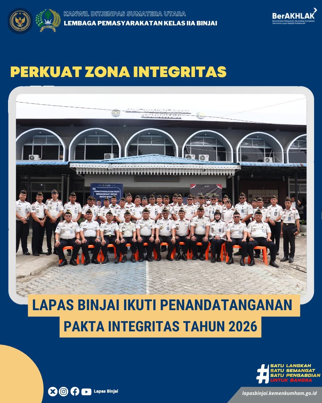BINJAI | TURNBACKHOAX.NET – Kepala Lembaga Pemasyarakatan (Lapas) Kelas IIA Binjai mengikuti kegiatan Penandatanganan Komitmen Bersama dan Pakta Integritas Tahun 2026 yang diselenggarakan di lingkungan Kantor Wilayah Direktorat Jenderal Pemasyarakatan Sumatera Utara, Jumat (30/01/2026).
